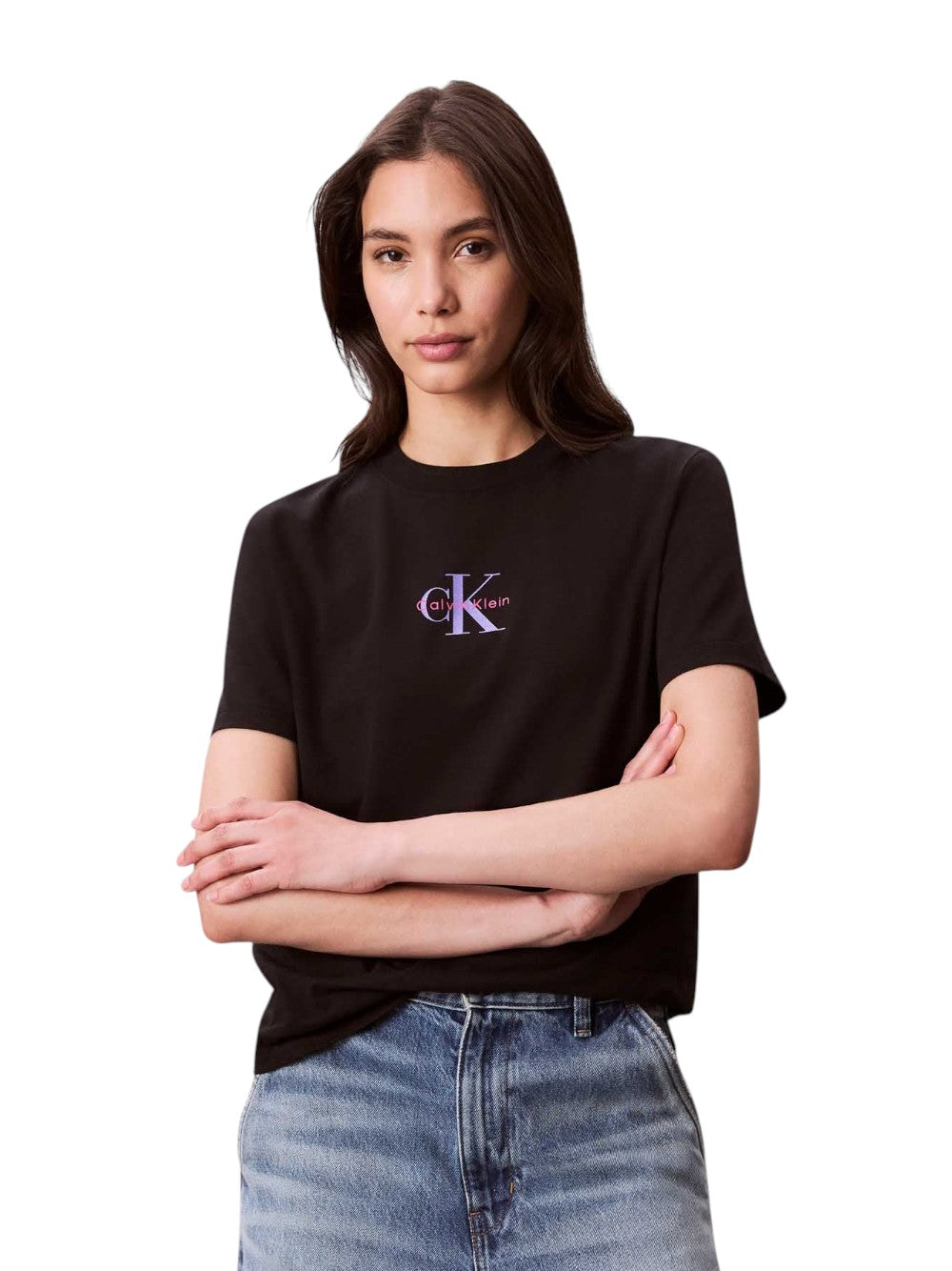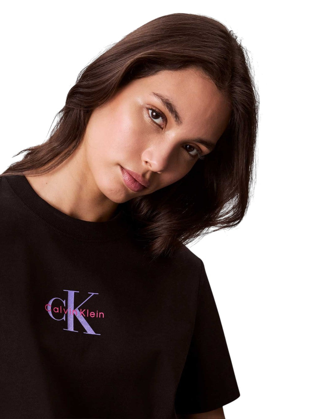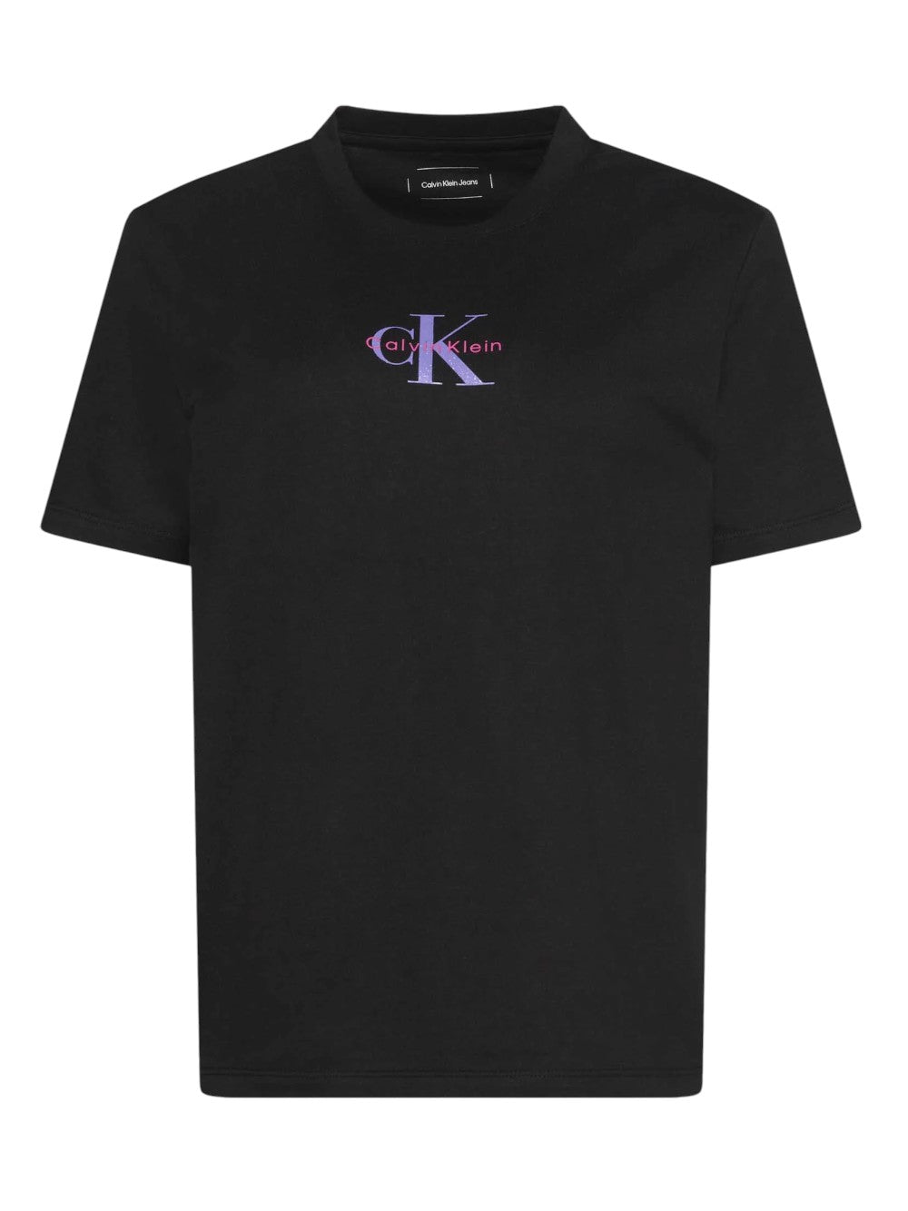 T.shirt Calvin Klein in Cotone Nero e Logo Glitter LV047C856g-UB1
