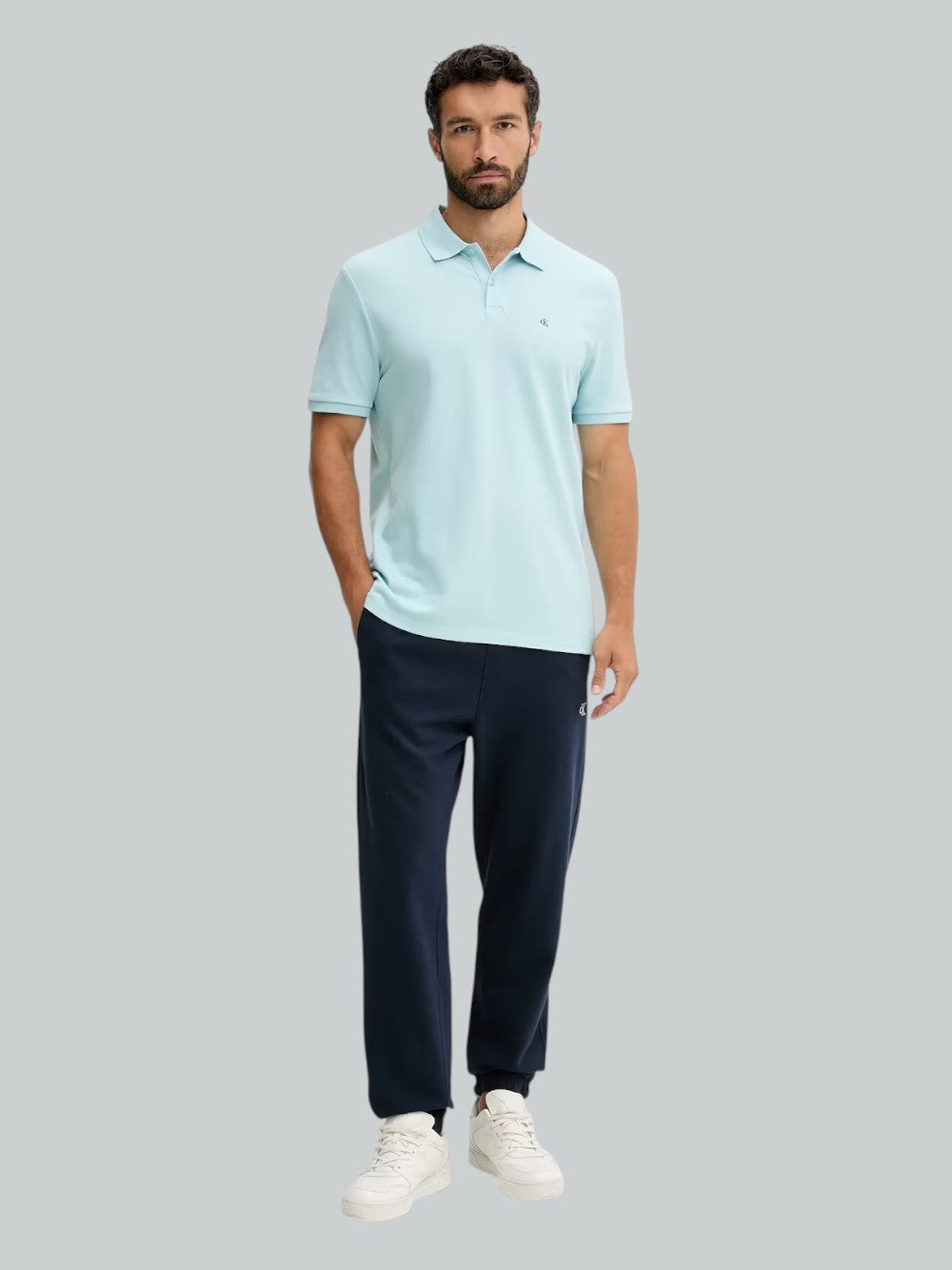Pantalone Calvin Klein in Cotone Garzato Blu con Logo Monogram LV04RD241G