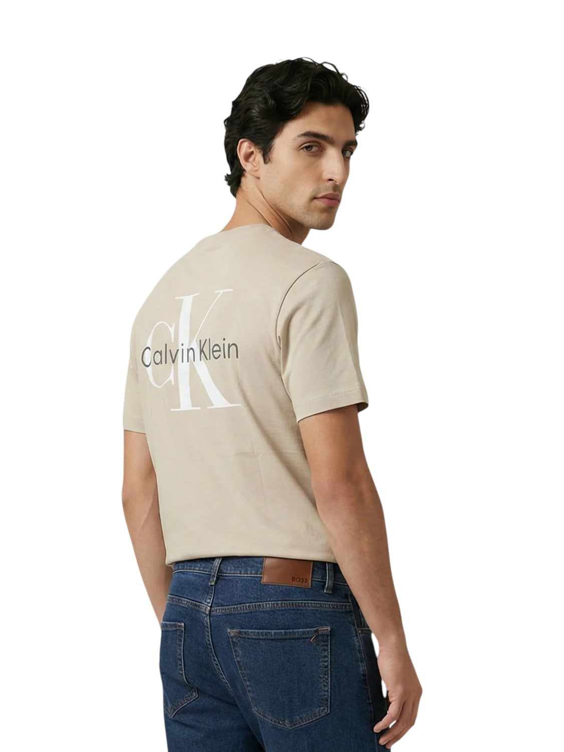 T-Shirt Calvin Cotone Beige Big Logo Dietro LV14RF852G-2JX