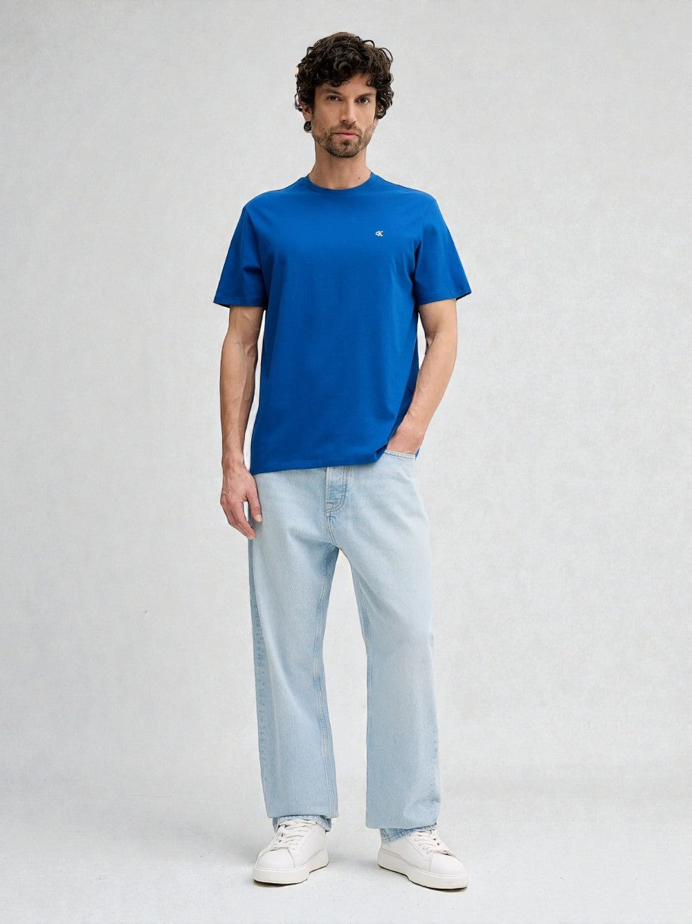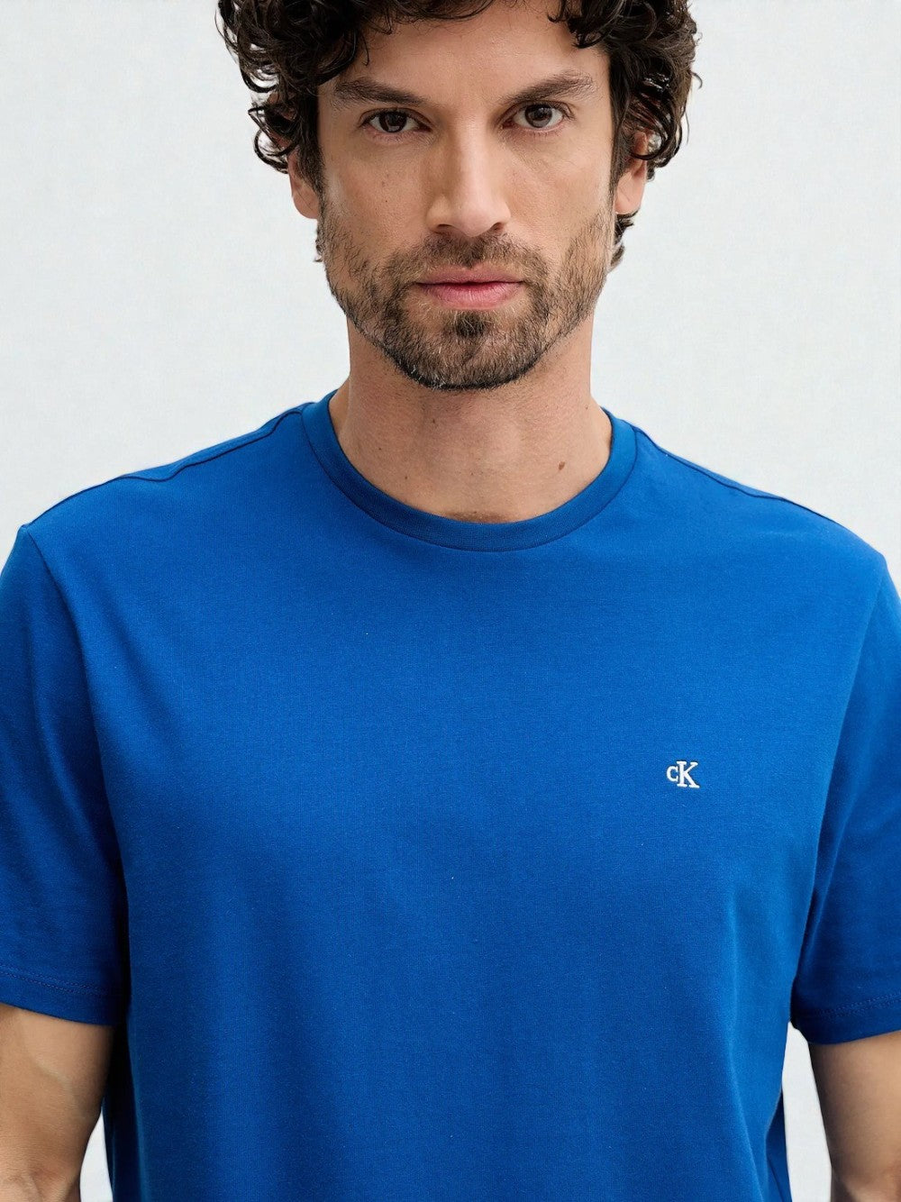 T-Shirt Calvin Klein in Cotone Blu Royal con Logo Monogram LV04RD254G