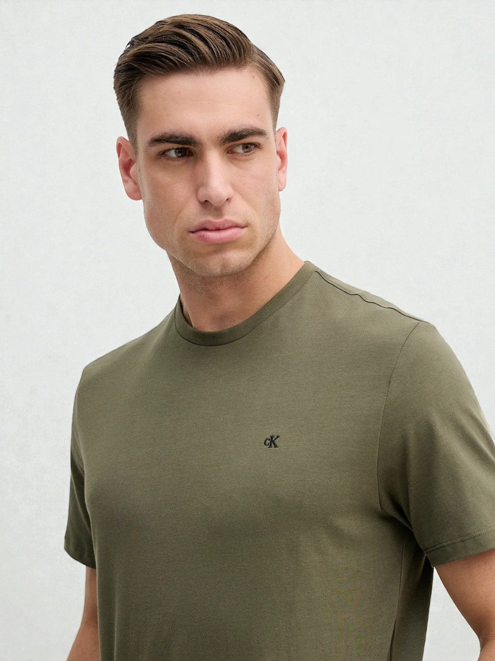 T-Shirt Calvin Klein in Cotone Verde Militare con Logo Monogram LV04RD254G